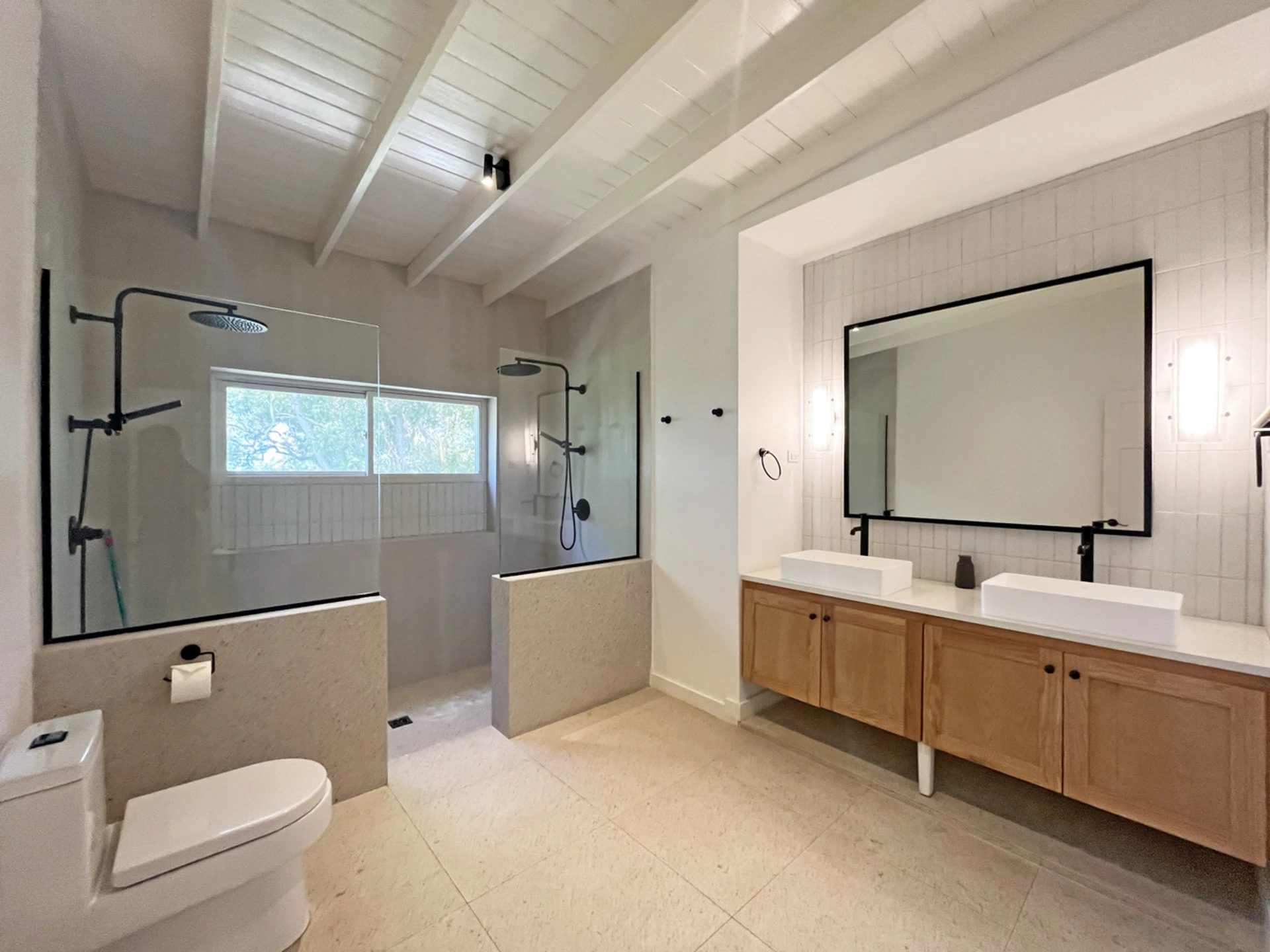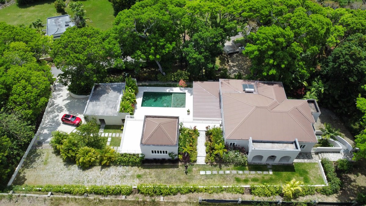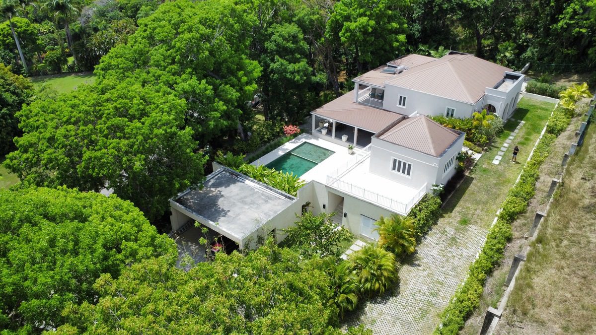 Positioned within a lush, tropical oasis adorned with mature mahogany trees, In the Woods is a retreat that perfectly blends modern elegance with natural beauty. Set on elevated grounds in the peaceful enclave of Sion Hill, this recently completed home offers distant sea views and a calming, zen-like ambiance throughout.
