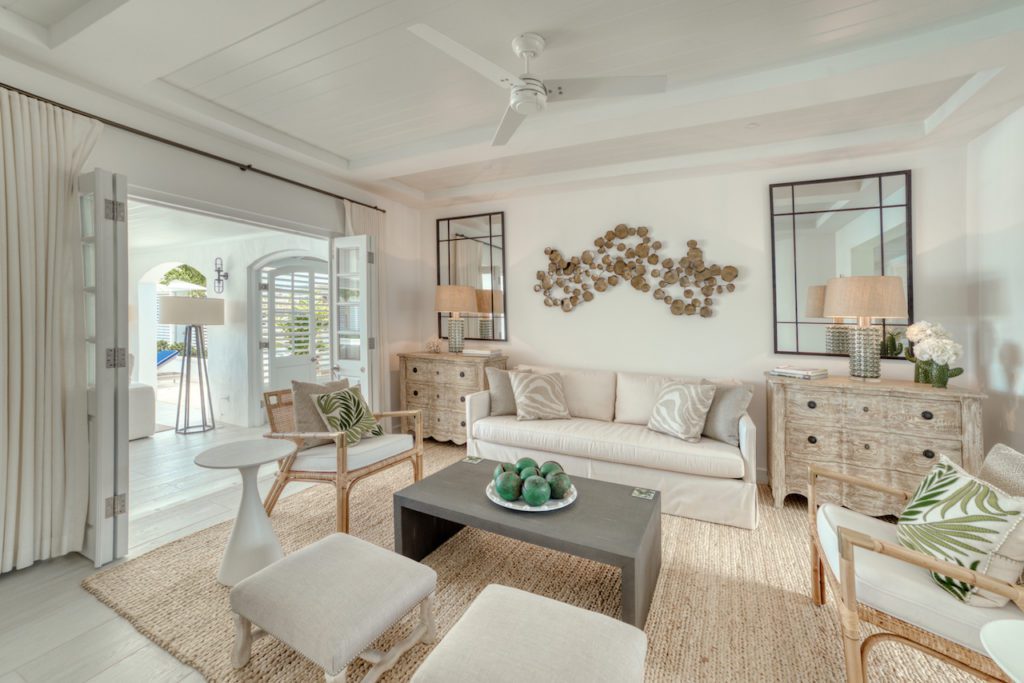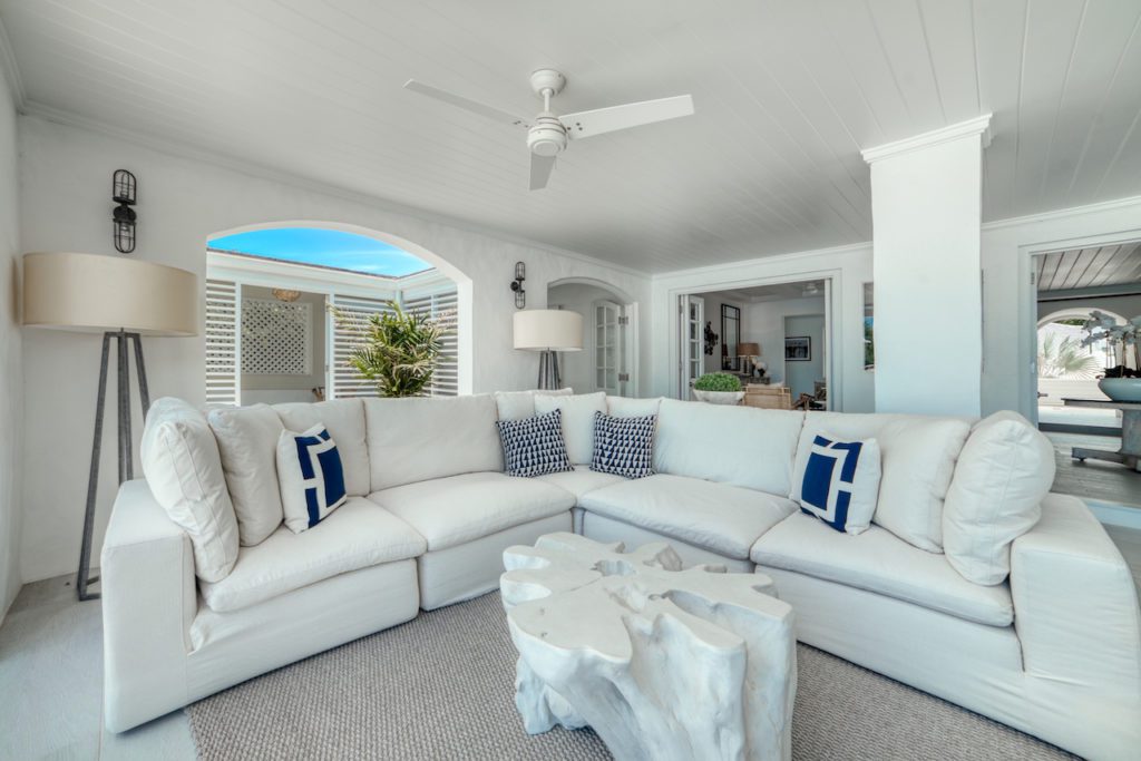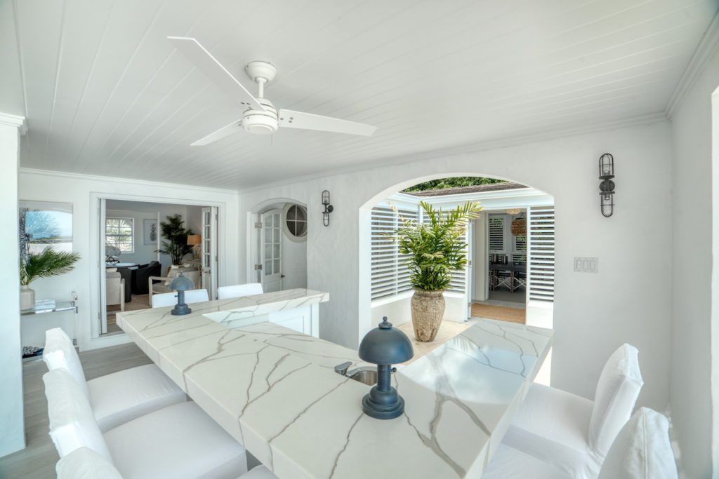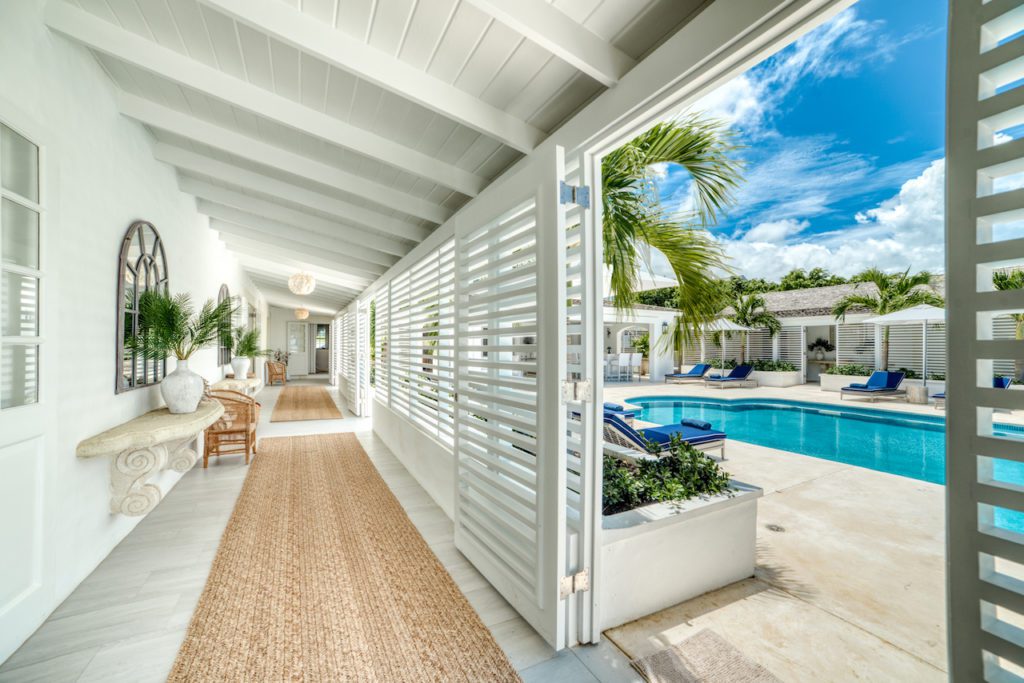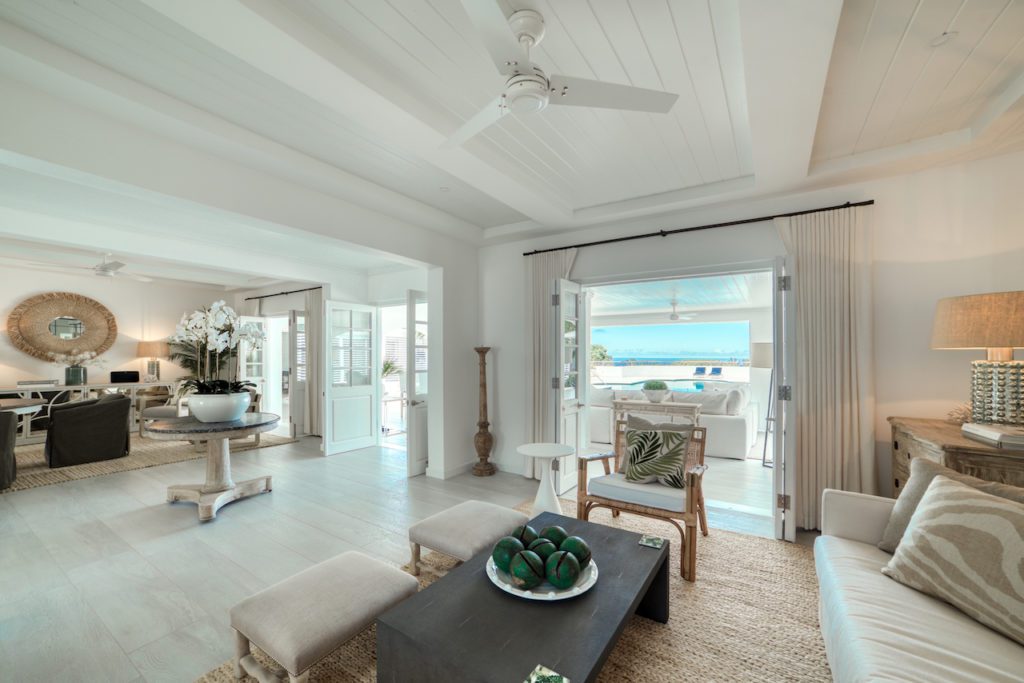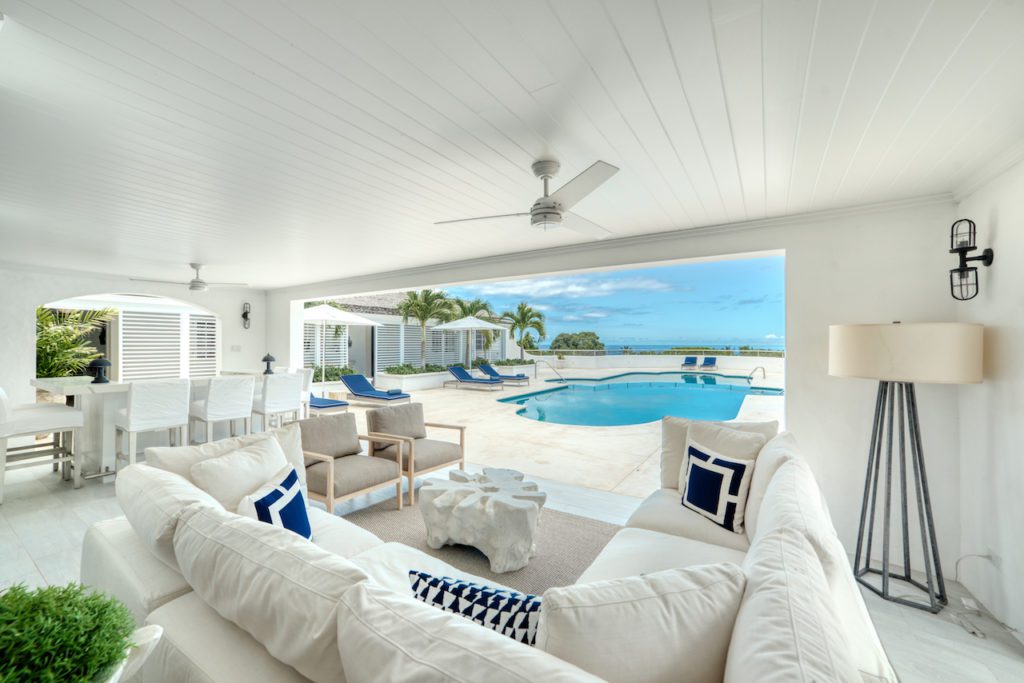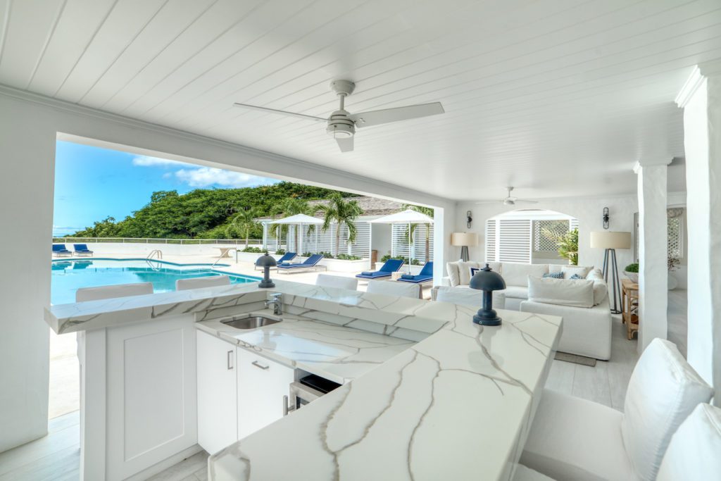 As you arrive through the gates the ‘wow’ factor view from the front door leads you through the house and beyond the pool to where the Caribbean Sea meets the sky. On the covered terrace you will find a bar with relaxed seating arrangement for hosting your sundowners.