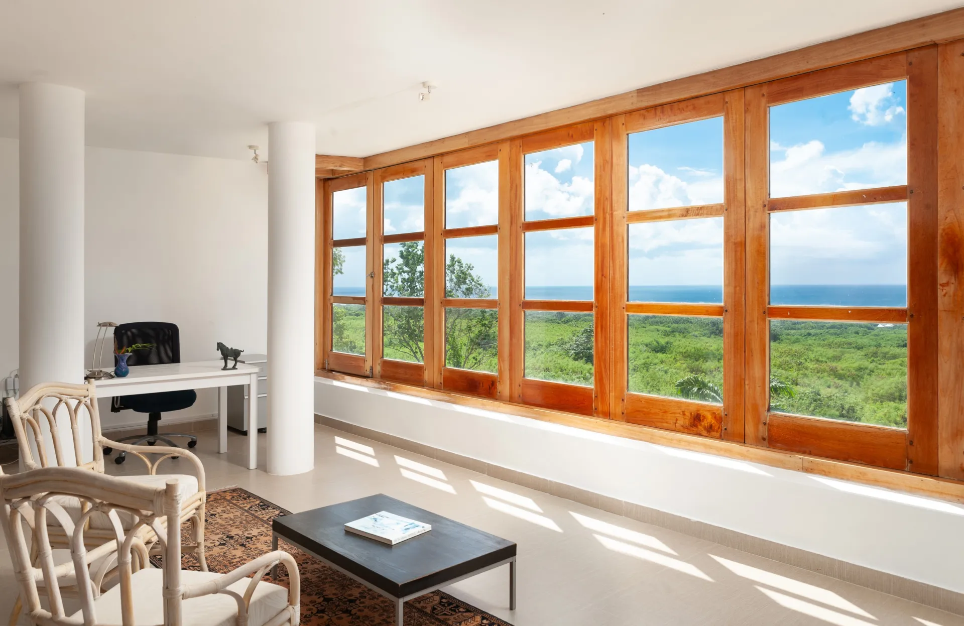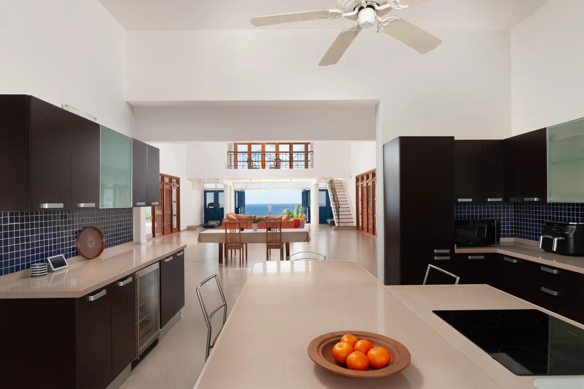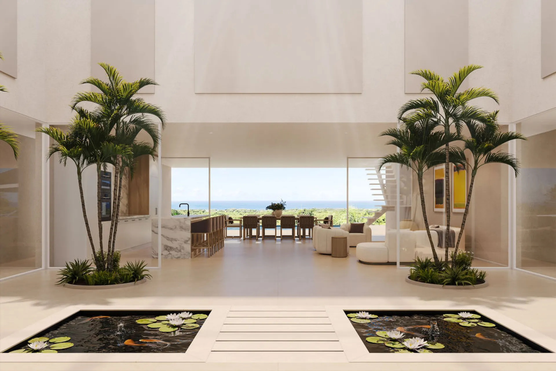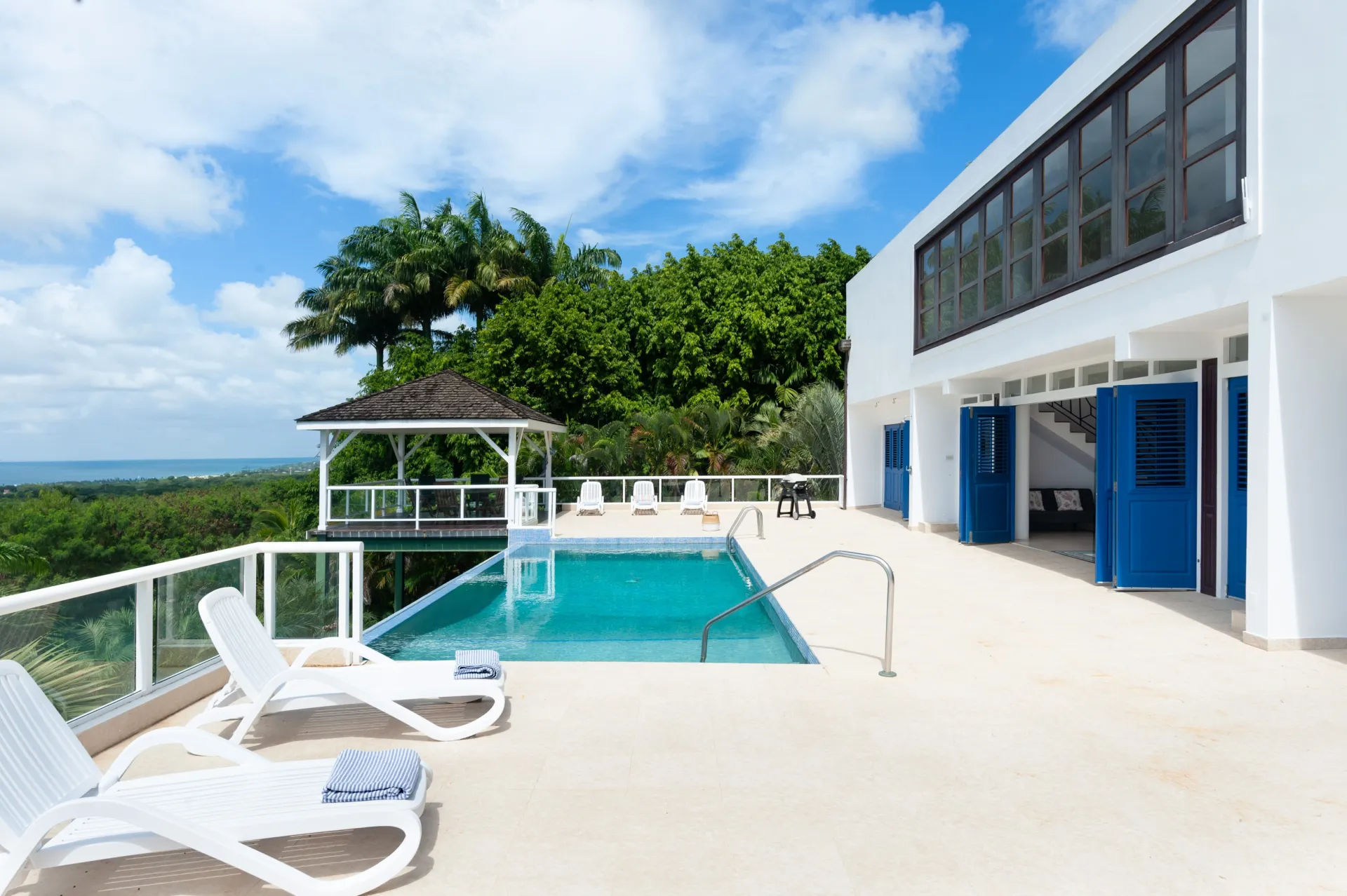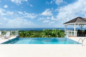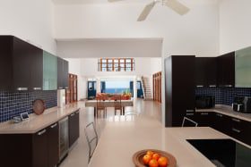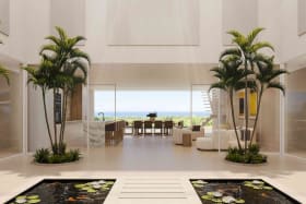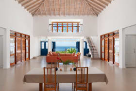 Designed as an eco-friendly property, easterly breezes flow freely through this high-ceilinged home, efficiently lowering the interior temperature. On entering the villa, you are immediately struck by the panoramic sea and sky views, as well as the generous space for open plan living and dining. On the east side, there is a fully equipped kitchen, enclosed kitchen garden and TV, gaming, entertainment or media room. Four substantial en-suite bedrooms are on the ground floor – two primary suites which open onto the spacious pool deck area and two additional suites with private balconies. Along with ample space for sun loungers and tanning on the pool deck, there is a covered poolside gazebo for outdoor dining, family gatherings, weekend BBQs and sundowners. St Peter House also offers a large loft space with spectacular platinum coast views, perfect as a work-from-home office or for optional conversion to a very special new principal bedroom. The house also provides a guest/staff apartment on the lower ground floor, plus a laundry room and a further room well situated to be a formal office.